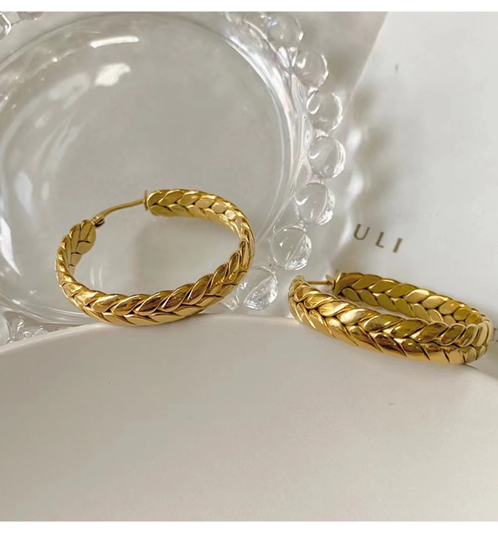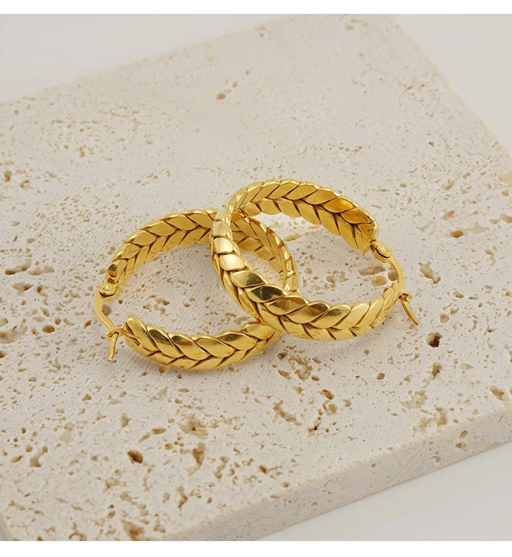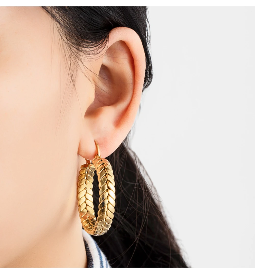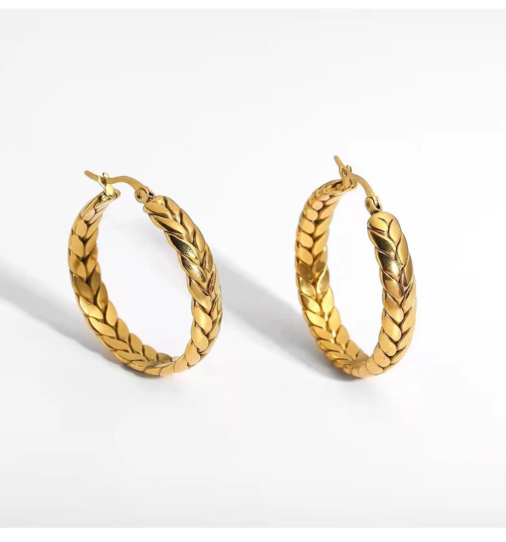 1Pair Wheat Hoop Earrings Stainless Steel Not Fade Ear Rings