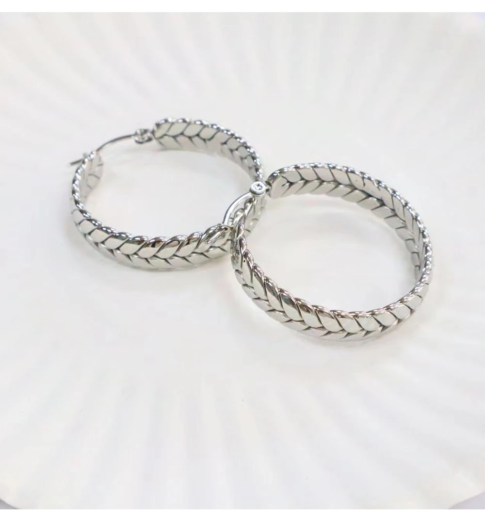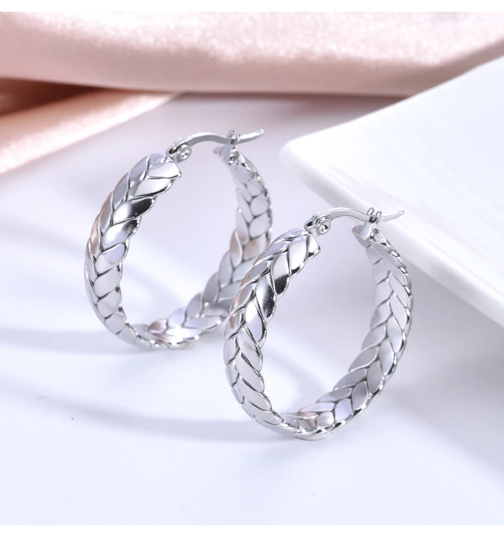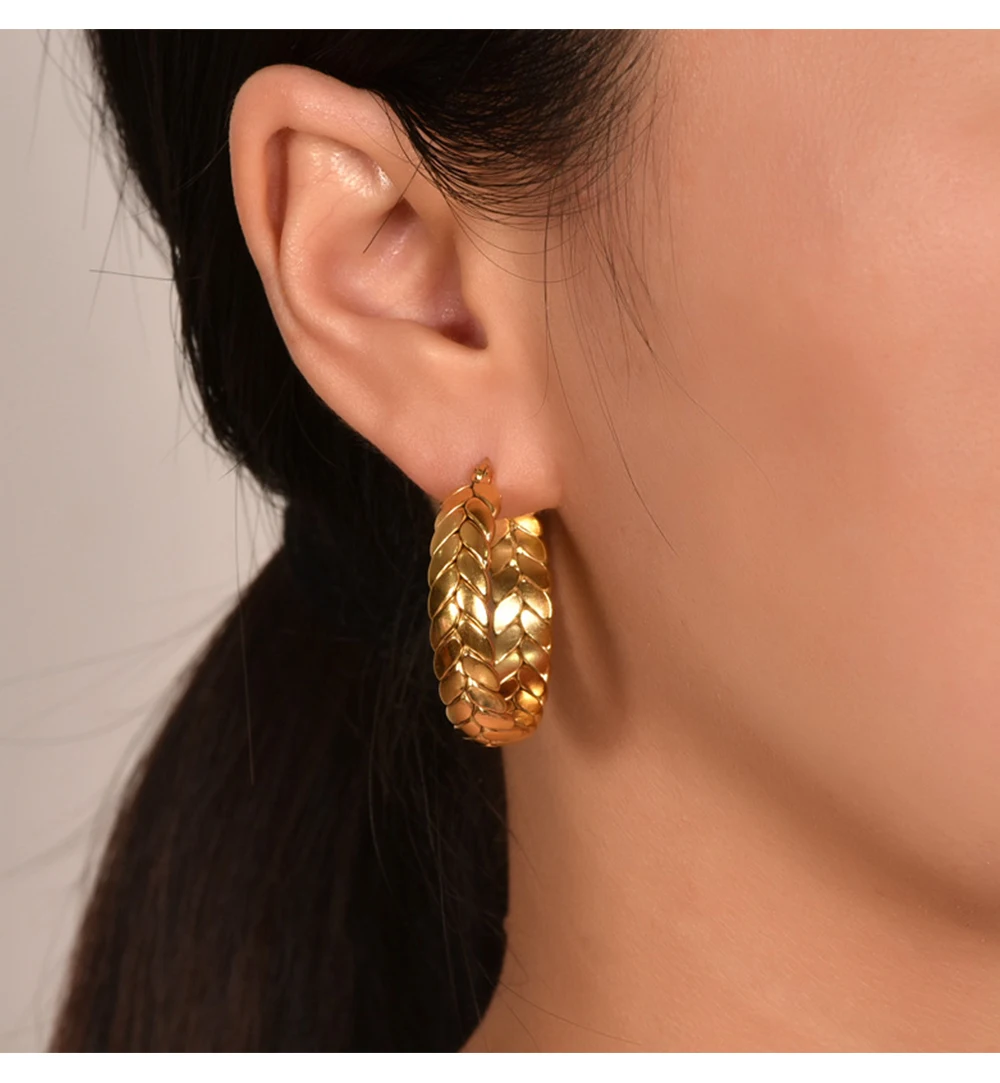 1Pair Wheat Hoop Earrings Stainless Steel Not Fade Ear Rings