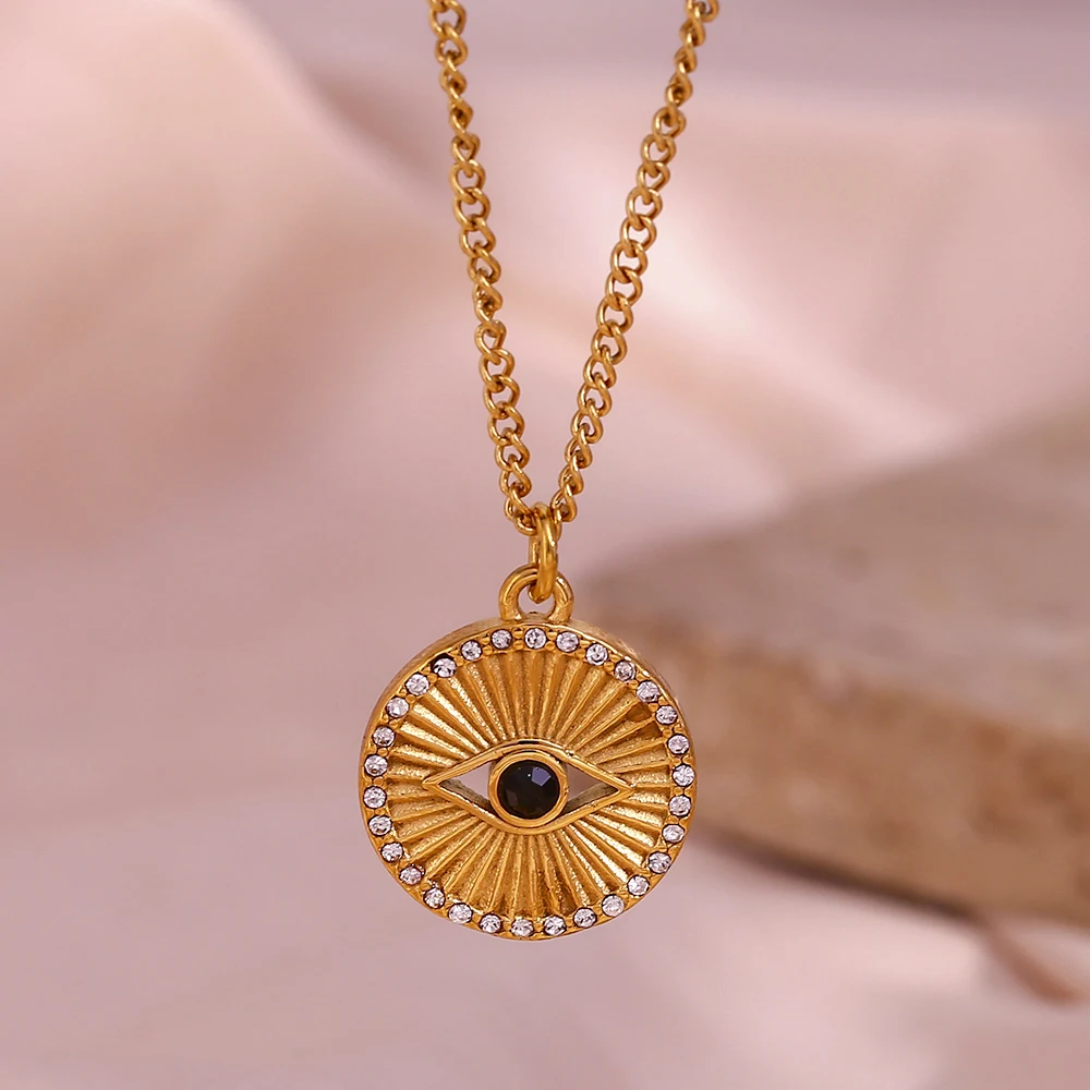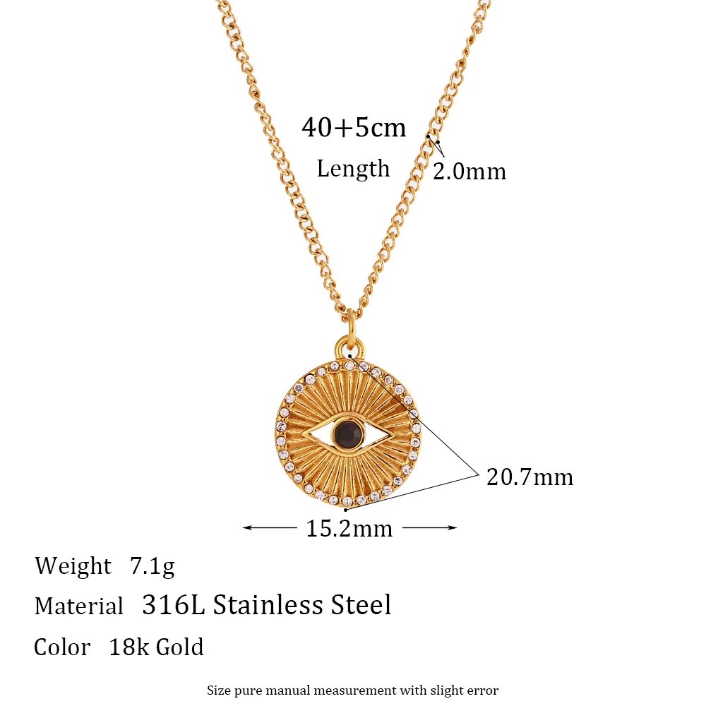 Evil Eye Circular Sun Luxury Designer Jewelry Stainless Steel Necklaces