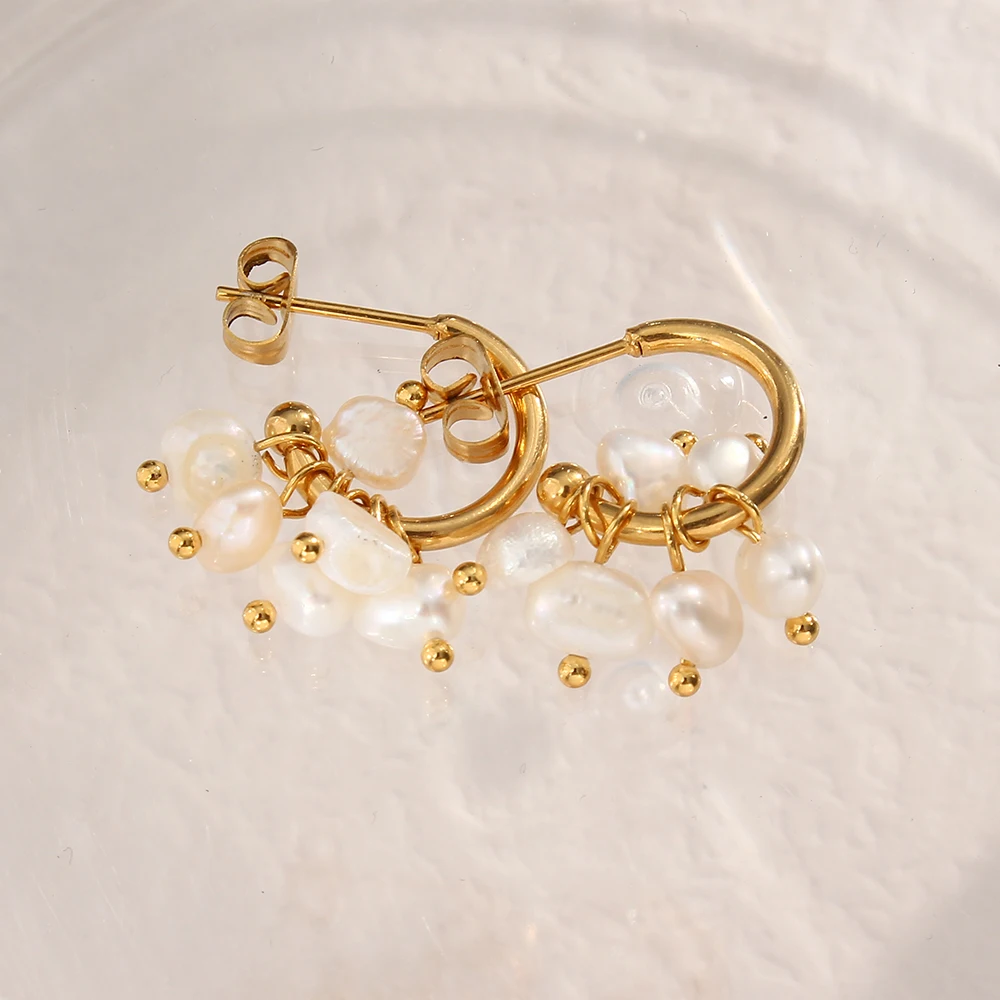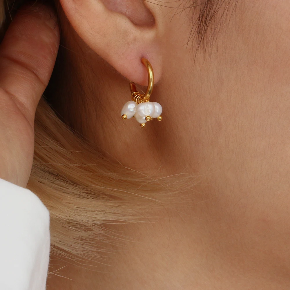 Super Elegant Delicate Small Freshwater Pearl Hoop Earrings